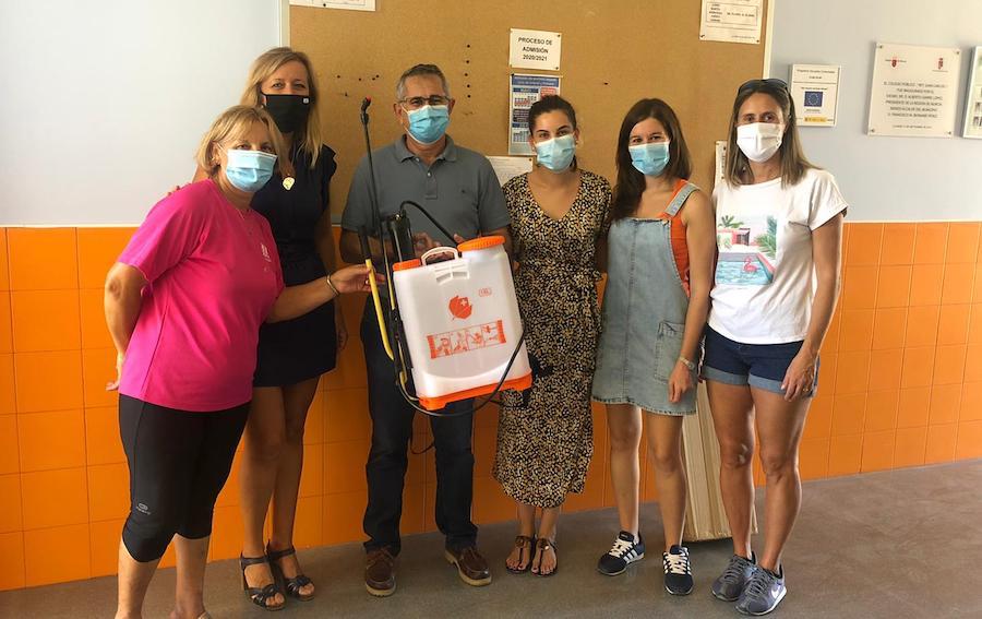 La concejalía de Educación ha repartido en los centros del municipio de La Unión dispensadores en forma de mochila con líquido desinfectante para ser utilizados en los patios.