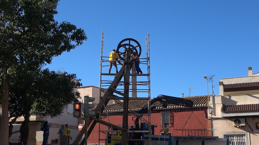 El monumento es un castillete original que pertenecía a la mina ‘El Calderín’ y que hace años fue ubicado en su actual emplazamiento, donde ahora sufre el ataque de la carcoma, que ha generado que exista hasta riesgo de caída. El Ayuntamiento de La Unión, dado su simbolismo para esta tierra minera, ha decidido, acertadamente, su restauración.