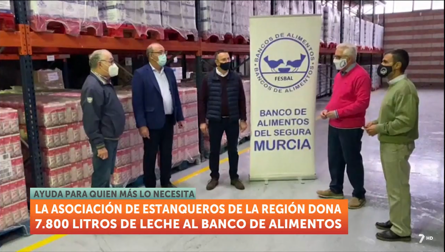 La Asociación de Estanqueros de la Región de Murcia, que tiene como presidente al unionense Leandro Martínez Bermúdez, ha donado casi ocho toneladas de litros de leche al Banco de Alimentos de la Región de Murcia.