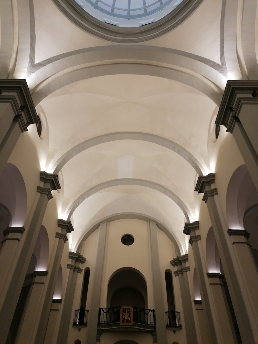 Se ha diseñado una envolvente luz ambiental provocada por el efecto paraguas al iluminar las bóvedas central, las laterales y la cúpula. Esta última, por ser el espacio más elevado del templo que hace referencia al cielo, ha sido iluminado con una luz de una tonalidad un poco más fría y azulada que produce una sensación de mayor profundidad.