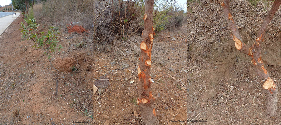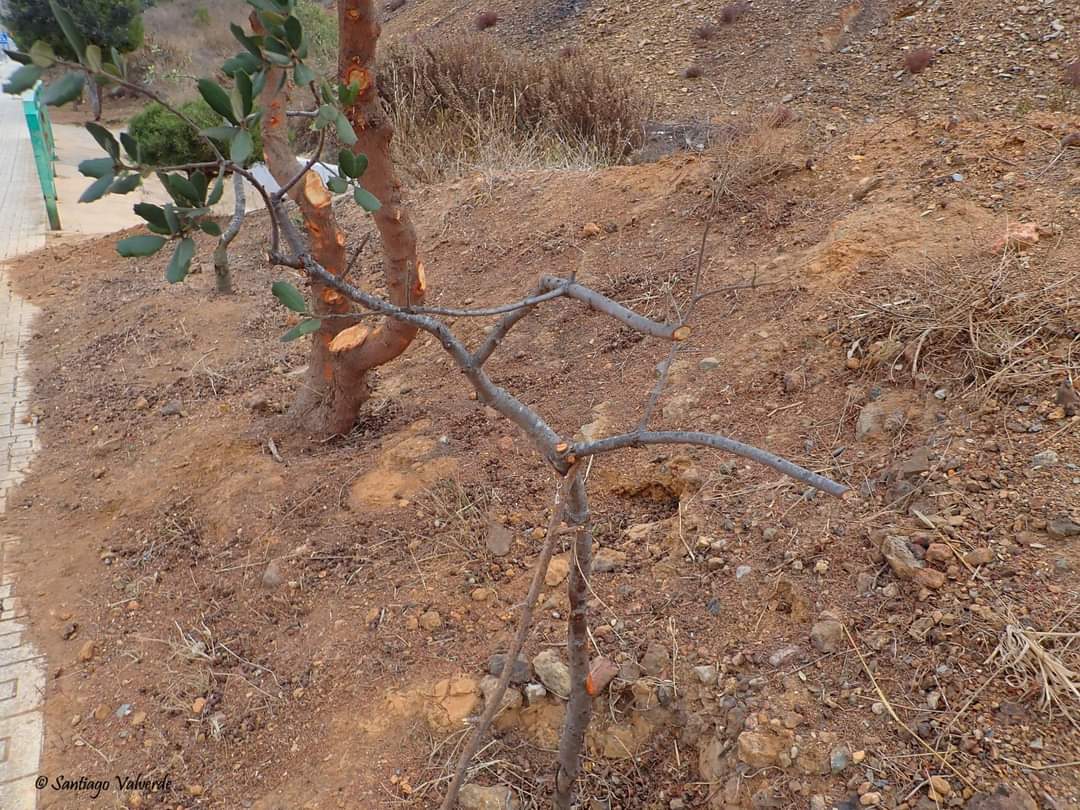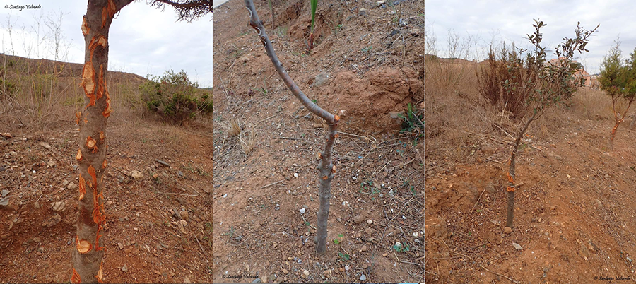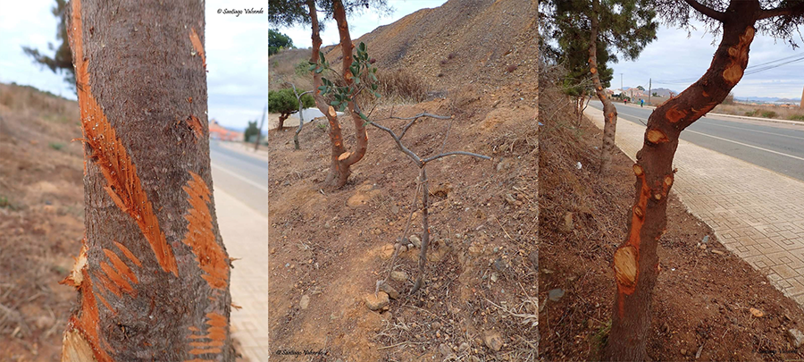 “Ambas especies, incluidas en el Catálogo Regional de Flora Silvestre Protegida de la Región de Murcia (Decreto 50/2003, BORM n° 131), la primera en la categoría de ‘Vulnerable’ y ‘De interés especial’ la segunda, en ningún caso necesitan de poda alguna, y aún menos esta ‘poda’ que los ha dejado desmochados y heridos.