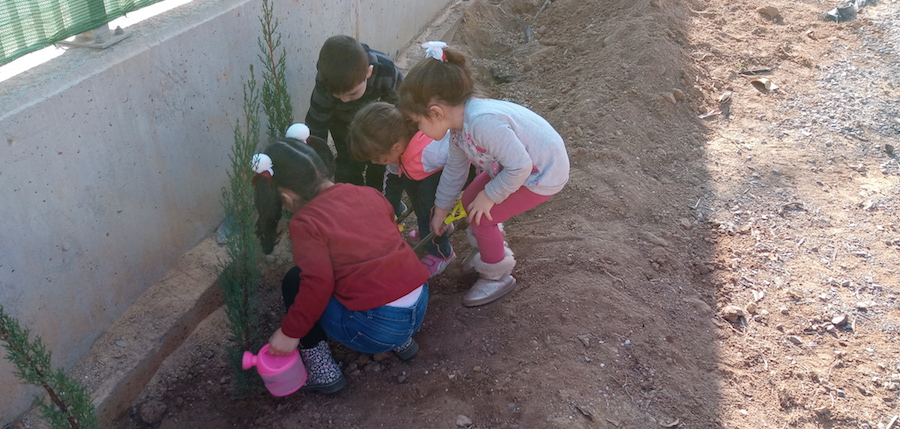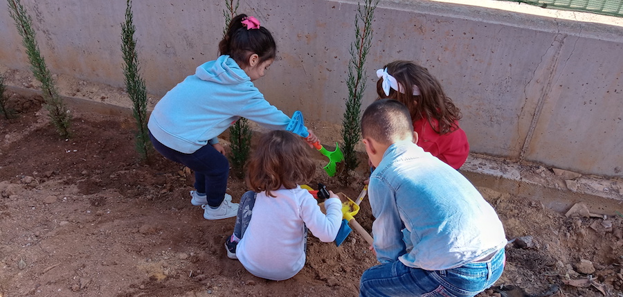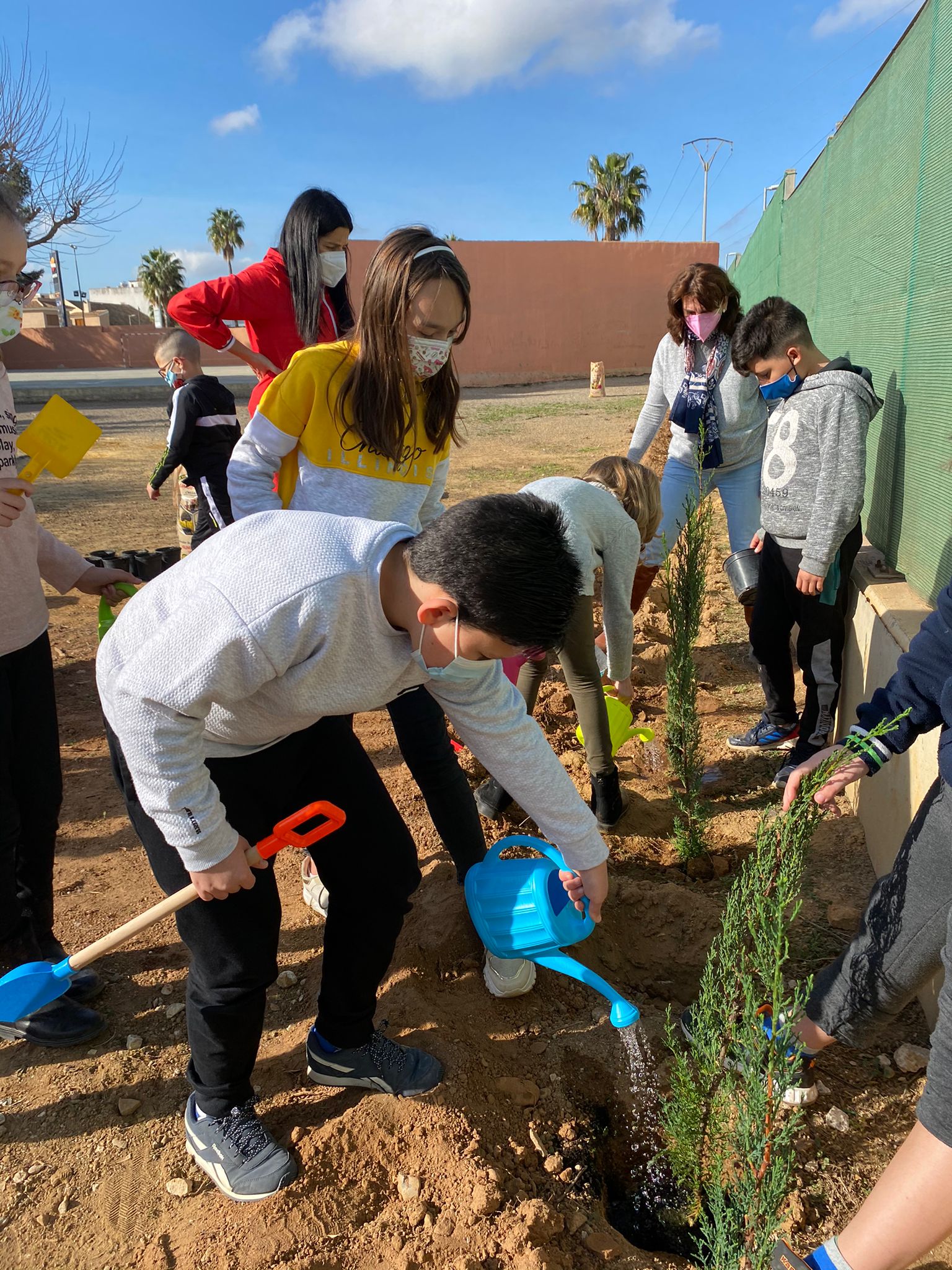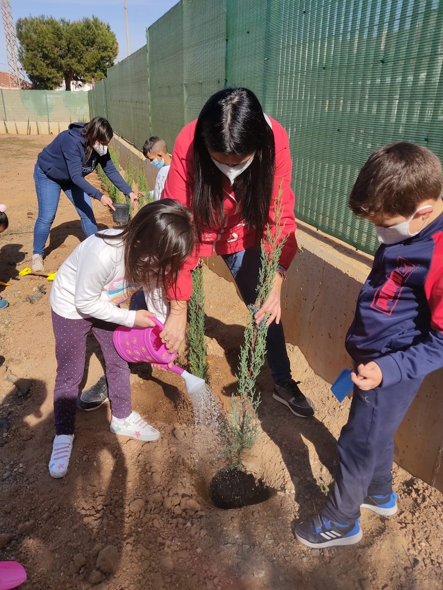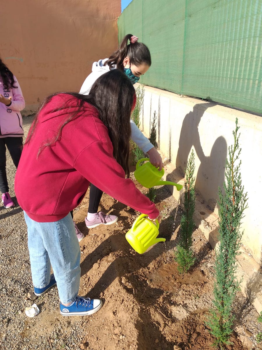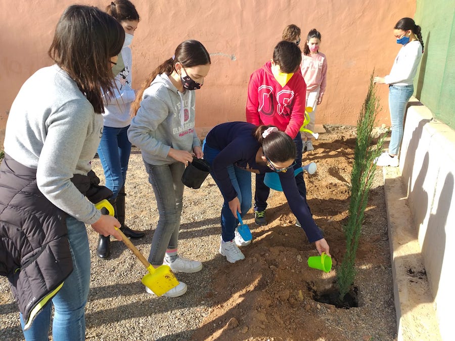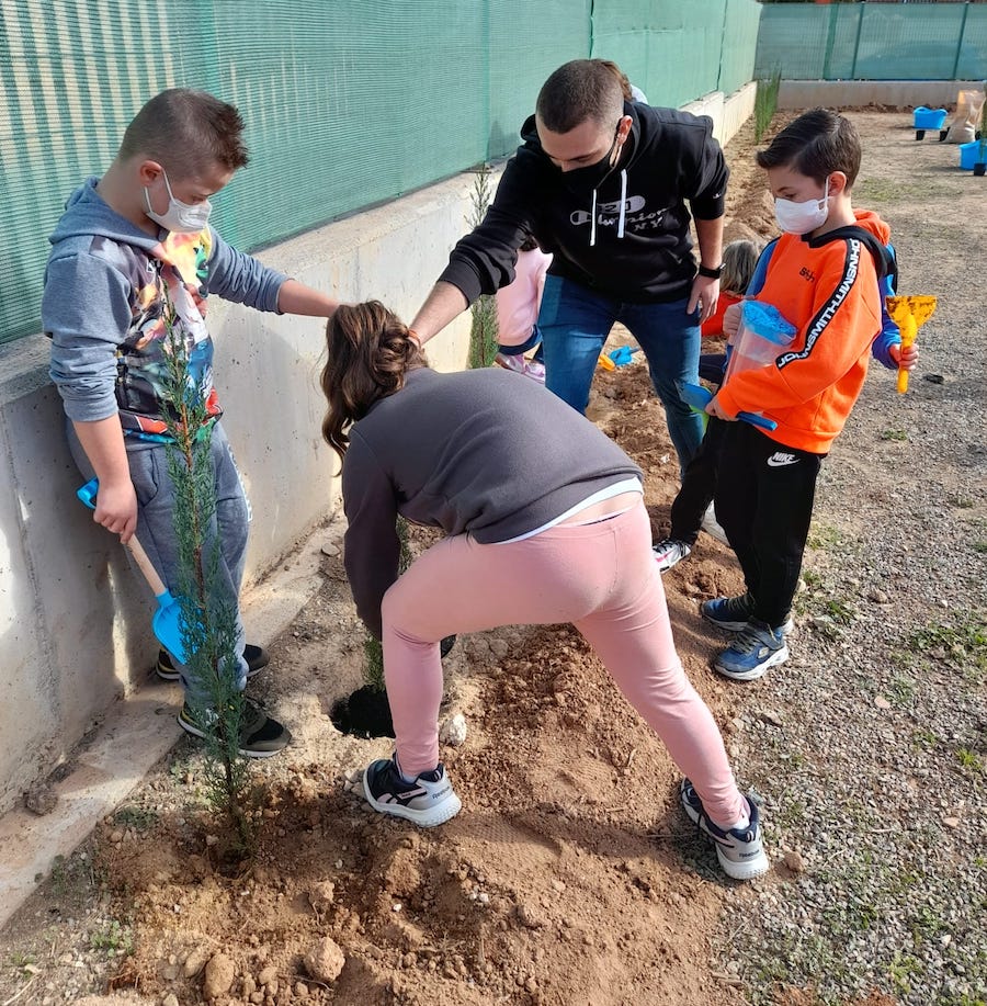 Los alumnos y profesores del Colegio Herrerías, generan espacios verdes en el patio del Colegio con la actividad de la plantación de árboles en una parte de la zona de la valla del centro. Con ella se pretende: