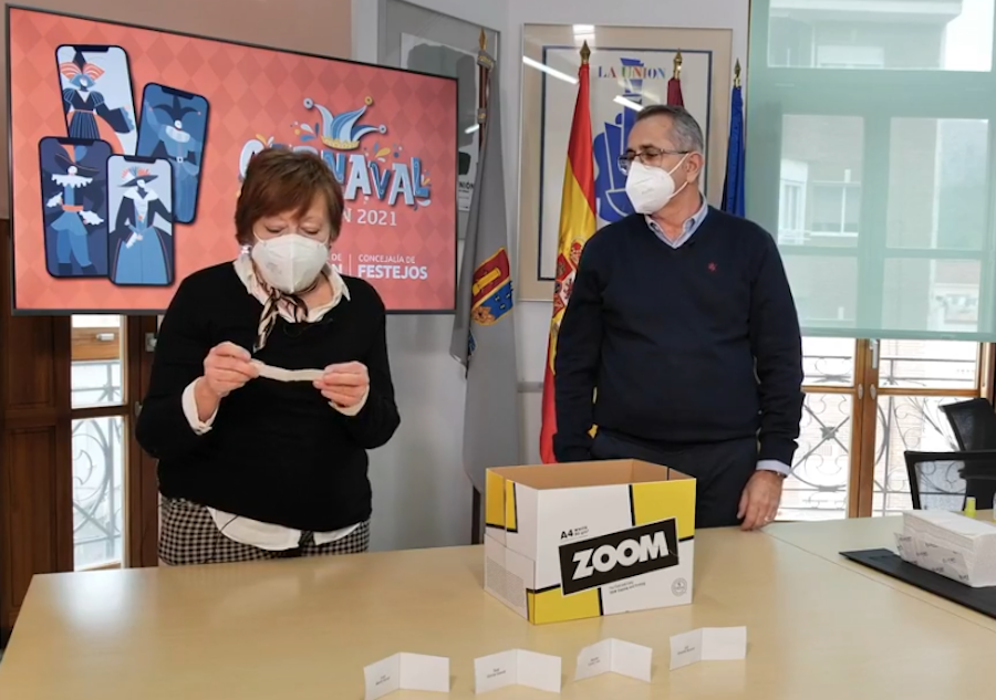 El concurso organizado por el Ayuntamiento de La Unión ha acogido hoy el sorteo de entre todos los participantes para elegir los destinatarios de los cinco vales, el cual ha sido emitido en directo por el perfil de Youtube del consistorio. La edil Ana María Rodríguez, en presencia del alcalde, Pedro López, ha sido la encargada de sacar los nombres de los agraciados. Para ver el sorteo pinchar sobre la imagen inferior. El concurso consistía en remitir de forma telemática una fotografía con disfraz acompañado por el cartel de Carnaval de La Unión 2021.