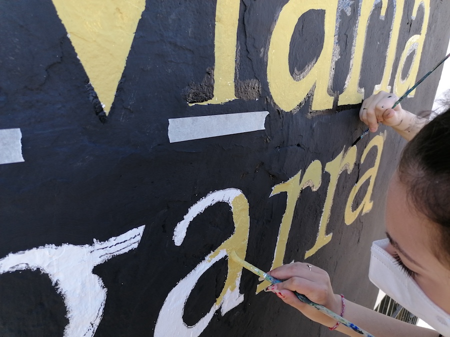 Un grupo de seis alumnas del Bachillerato de Artes integrado por María Estrada, Alba Fernández, Desirée Herrera, Clareatnis Isturiz, Olga Muñoz, y Judit Vidal, y coordinados por el profesor y pintor Esteban Bernal, han realizado durante cinco días el mural de la fachada principal del centro educativo. Con 8 metros de altura y 2,20 metros de anchura, ha resultado ser el mural más altitud realizado hasta la fecha en La Unión.