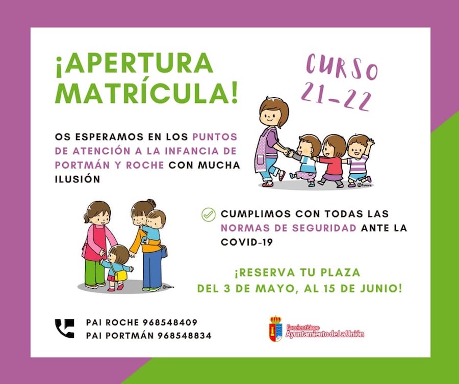 El Ayuntamiento de La Unión ha abierto el período para solicitar plaza en ambos puntos de atención primaria. El plazo expirará el 15 de junio.