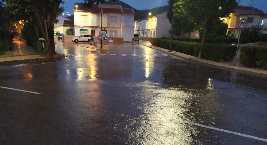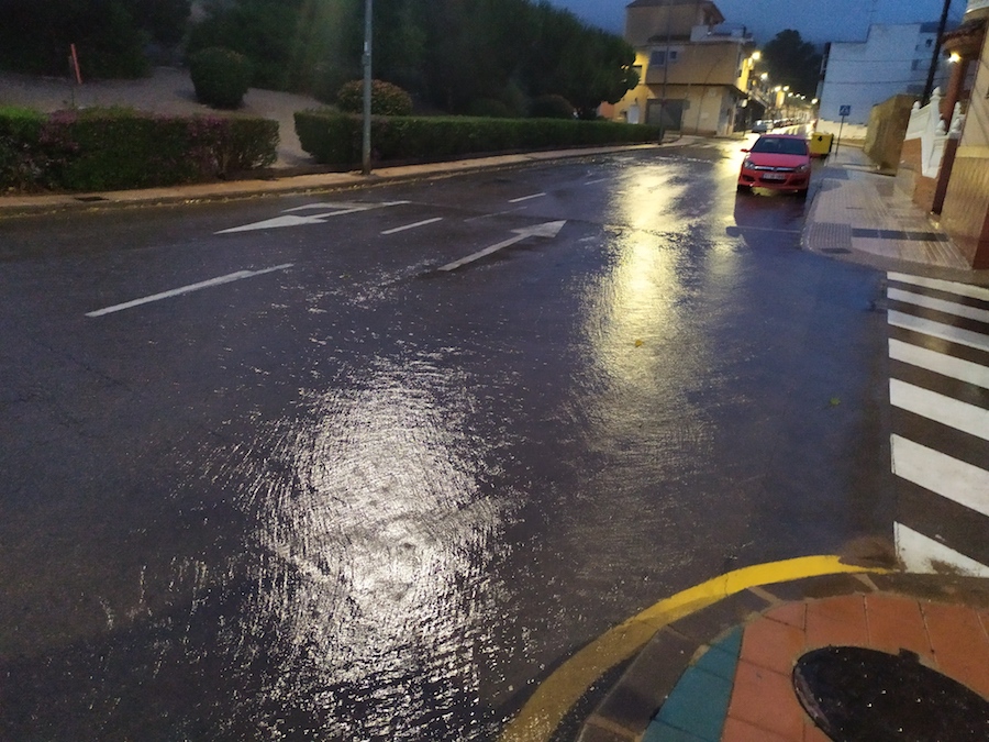 Las imágenes que adjunto corresponden al pasado día 23 de mayo. En el momento en que estas imágenes fueron realizadas, la lluvia había amainado un poco, pero aún así se puede observar la cantidad de agua que baja por la avenida.