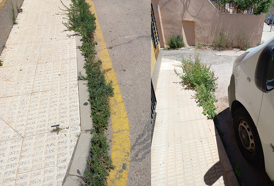 Un vecino de La Unión se ha dirigido a nuestro 'Buzón de los lectores' para quejarse de que desde "hace tiempo no pasa la máquina que limpia las aceras de matas", indica, mostrando como ejemplo una fotografía de la confluencia de calle José Maestre con calle de la Gabriel.
