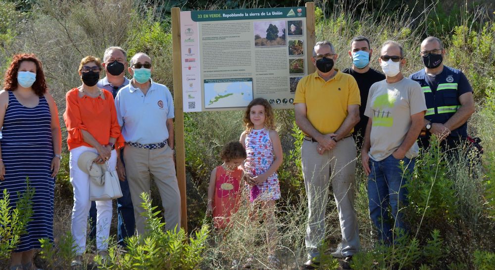 La puesta en valor del proyecto “33 en verde” se acompaña ahora de señalética que se ha instalado dentro de la reforestación vegetal que se lleva a cabo sobre terrenos municipales y de la empresa Portmán Golf SL.