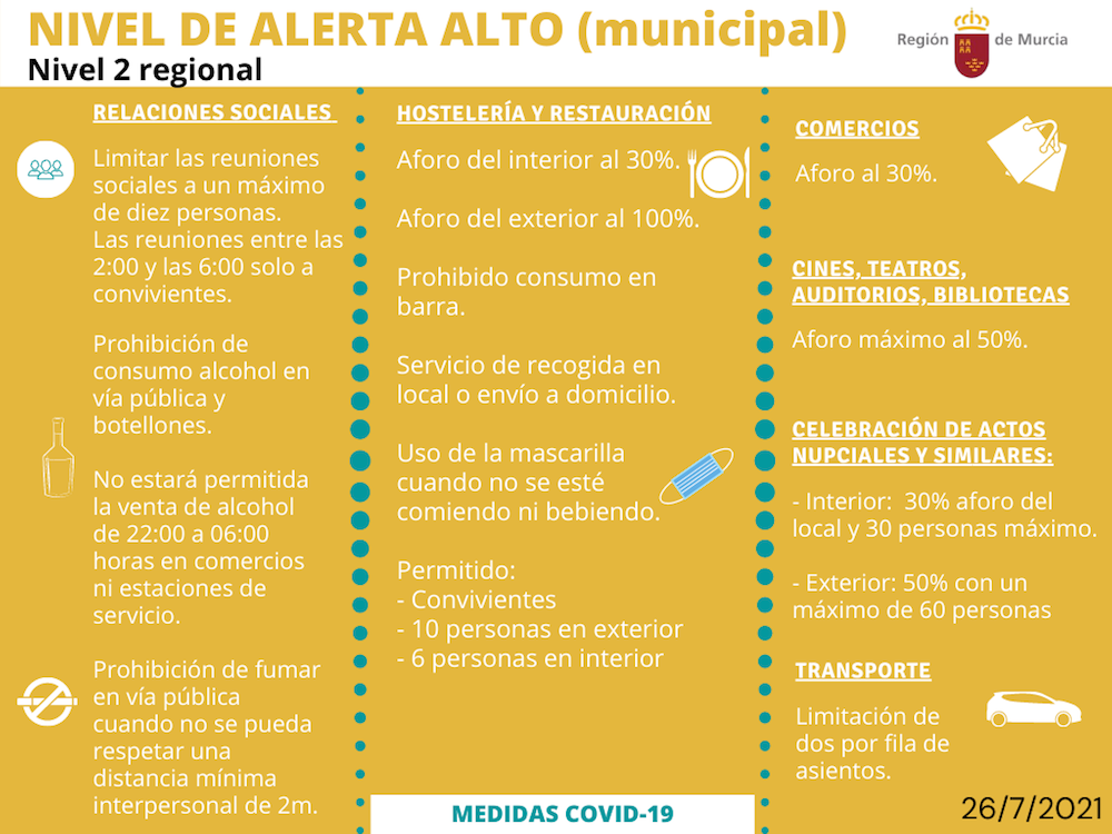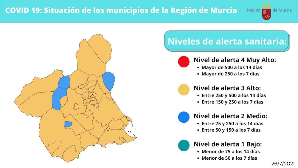 🔴 La Región registró el lunes 473 nuevos contagiados, de los que 10 se ubican en La Unión, municipio que sigue en el nivel 2 de alerta alto
