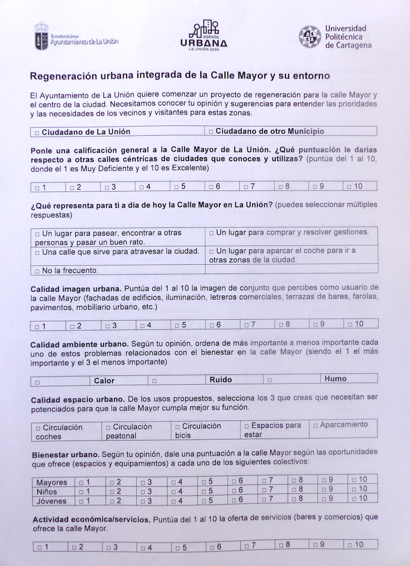 El Ayuntamiento de La Unión ha organizado una campaña de recogida de sugerencias y opiniones sobre el proyecto de regeneración urbana que afecta a la arteria principal de la ciudad. La carpa donde se entrega a los vecinos el cuestionario para que lo completen ha estado en el ‘Cante en la calle’ y junto al mercadillo semana estos días.