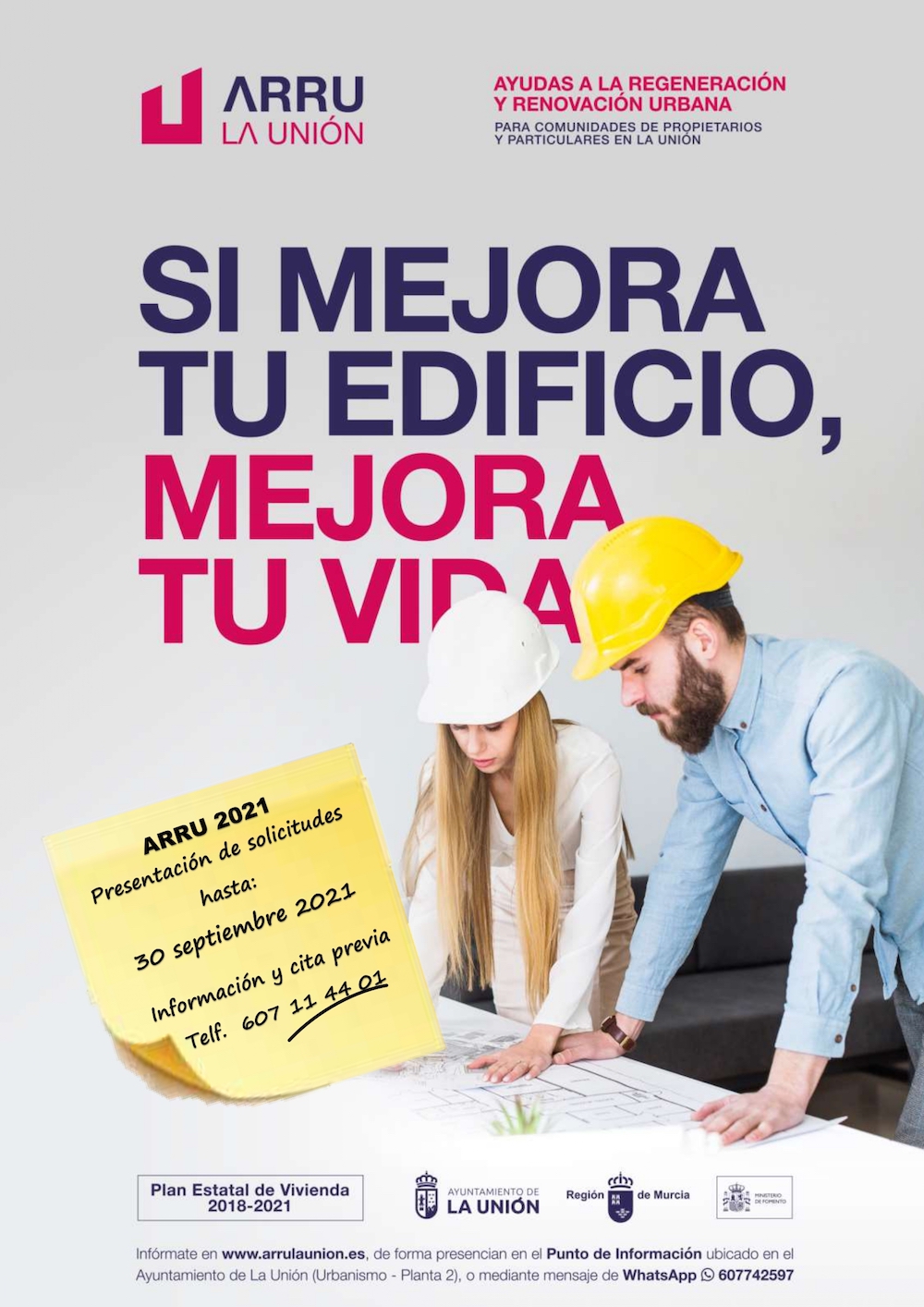 Más información en www.arrulaunion.es, por mensaje de whatsapp al 607 742 597 o en el punto de información del ARRU en Ayuntamiento de La Unión (Urbanismo, 2ª planta).