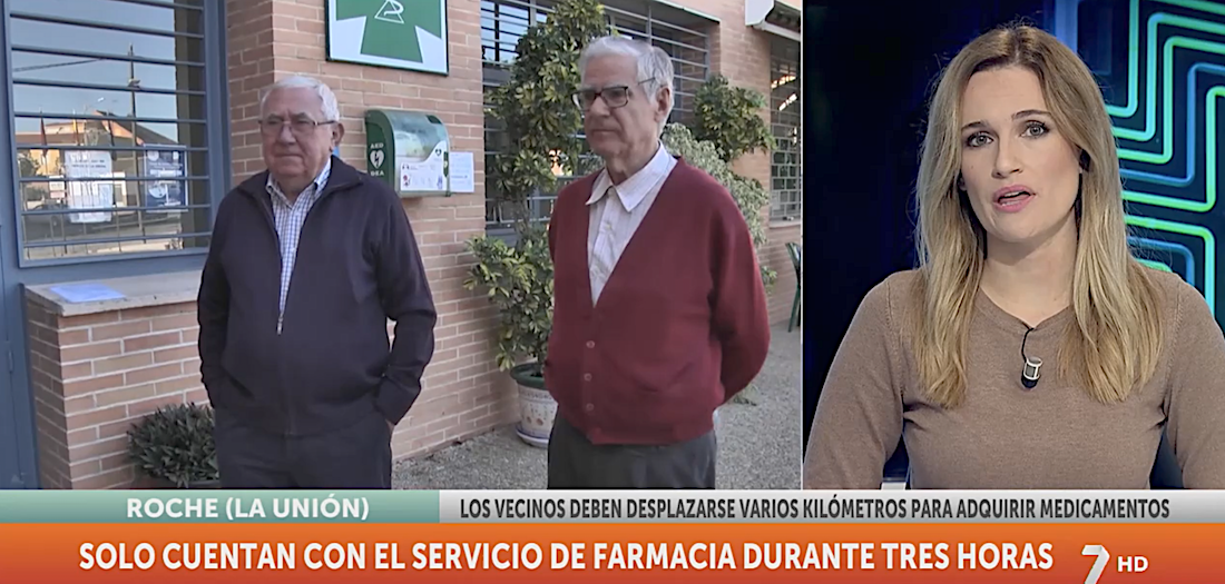 La asociación de vecinos, con el respaldo de medio millar de firmas recogidas, reclama para la pedanía la apertura de un establecimiento para dispensar medicamentos y no el botiquín del que disponen hasta ahora, solo con servicio de lunes a viernes, y abierto solo durante unas pocas horas por la mañana. El asunto también ha motivado que la televisión autonómica 7RM envíe un equipo a la pedanía (pinchar aquí). Desde la concejalía de Sanidad se han iniciado los trámites para llevar esta vieja reivindicación a la consejería de Salud.
