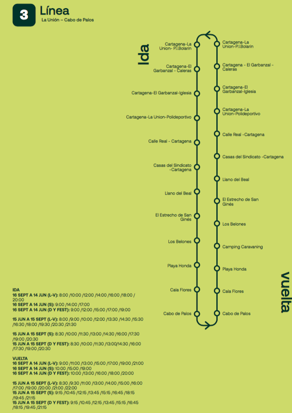 La Comunidad Autónoma ha dado a conocer hoy los itinerarios, de los que las líneas 2B y 3 son los que enlazan a La Unión con Portmán, Cartagena y Mar Menor hasta Cabo de Palos.