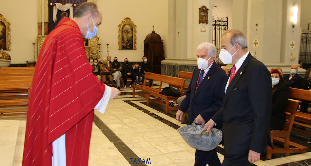 El presidente de los caballeros, Carlos Bernabé, junto con los socios y sus damas, iniciaban la jornada con la celebración de una eucaristía en el templo de Nuestra Señora del Rosario de La Unión, estando el Ayuntamiento de La Unión por su teniente de alcalde, Elena Lozano, y por concejales del equipo de gobierno y de la oposición. La misa minera ha sido cantada por 'Paco el Mones', acompañado a la guitarra por 'Juan el Mergo'.