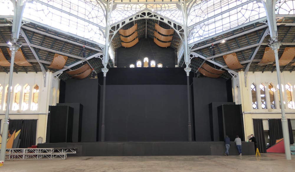 Durante la fase de restauración se ha sustituido una de las esquinas del escenario, por doble tablero, de mayor resistencia y durabilidad, y se ha igualado el nivel de la tarima de toda la superficie, con acabado negro mate. Los trabajos además han incluido el refuerzo de la estructura de madera que soporta el escenario, sustituyendo tableros dañados y añadiendo refuerzos a las vigas de madera inferiores. Además, la caja escénica se ha reforzado con nuevos tirantes a los muros de la estructura portante del edificio, así como el propio alzado y sus bases, renovándose todos los paneles de este armazón.