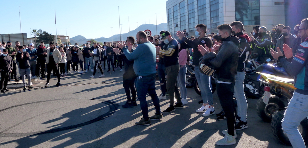Los que han pasado esta mañana por la redonda de Lo Bolarín han visto una inesperada concentración de personas, la gran mayoría moteros, en una vía pública del polígono industrial, en concreto, frente a la estación de servicio. A este diario también le ha llamado la atención y nos hemos acercado para enterarnos a qué se debía, pero, pese a preguntar hasta en tres ocasiones, no nos han querido responder. Deducimos que se trataba de un sentido homenaje póstumo a alguna persona muy querida por el colectivo motero, pues tras el minuto de silencio hemos escuchado: “Nuestro hermano motero está en el cielo”. D.E.P.