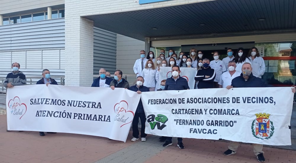 El movimiento 'Salvemos nuestra atención primaria' y la Federación de Asociaciones de Vecinos de Cartagena y Comarca, de la que forman parte los colectivos vecinales de Portmán, Roche y de la ciudad, han sido los convocantes.