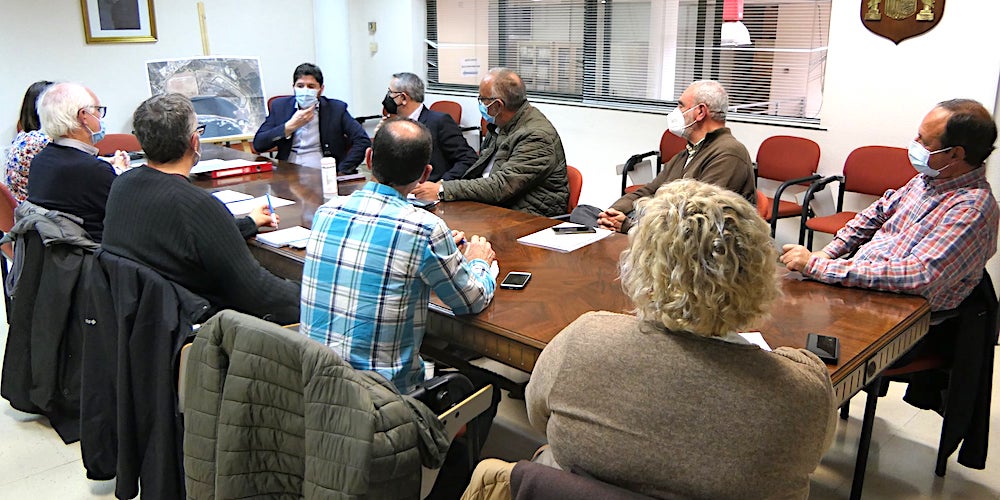 Demarcación de Costas habilitará un camino que transcurrirá desde el pueblo hasta la costa para facilitar el trayecto a pie de residentes y visitantes, además de asegurar a la Liga de Vecinos de que garantizará la línea de playa de San Bruno todo el año, informa el presidente de la Liga de Vecinos, Daniel Portero, a quien se observa en la reunión, de espaldas, con camisa azul a cuadros.
