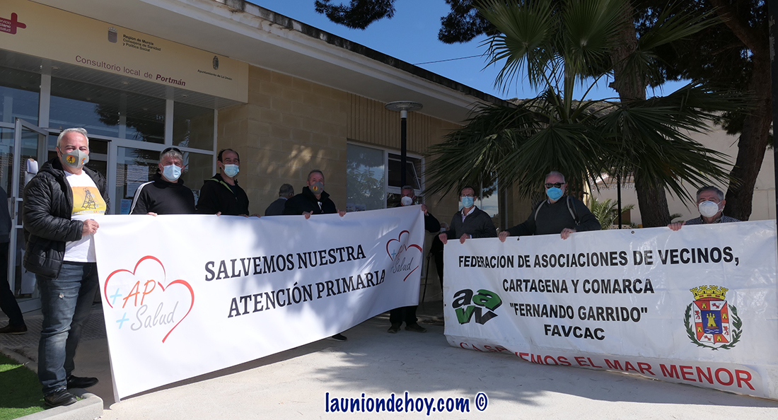 El consultorio de Portmán ha acogido esta mañana una concentración para reclamar a la consejería de Salud que se dote a la atención primaria de más recursos en la Región de Murcia, petición que en el caso de la localidad costera se ha ampliado con la ya antigua demanda de un servicio permanente durante todo el día al tratarse de una población de especial aislamiento.