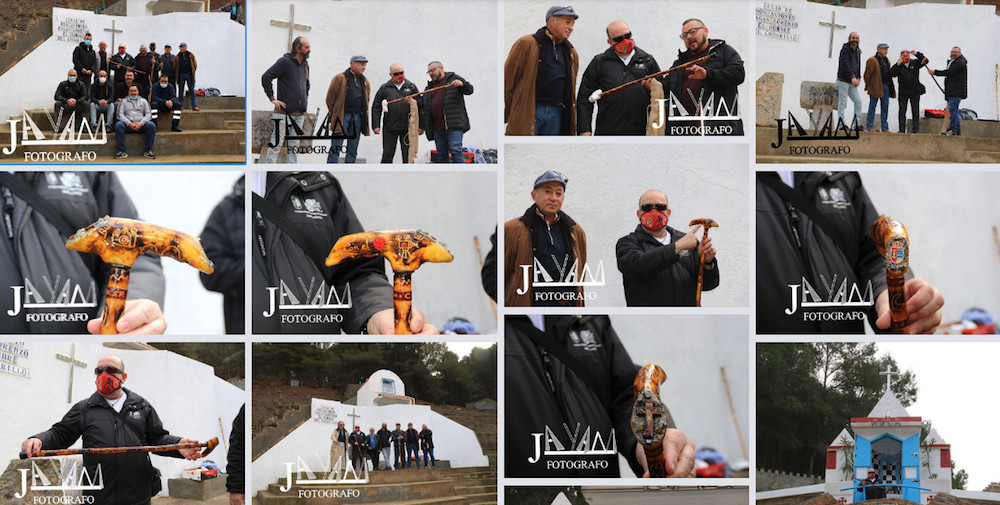 José Antonio Beltrán e Iván Ruipérez, de 'Salvemos El Chorrillo', han hecho entrega a Juanjo Carrillo de un artesanal bastón creado por Reinaldo Calle Esquinas y que acoge una innumerable simbología relacionado con el homenajeado, como símbolos, dibujos, fecha y frases, con las que se le muestra el cariño del que se ha hecho merecedor por su contribución desinteresada de dar a conocer el trabajo que este grupo está realizando incansablemente en este emblemático lugar, pulmón de oxígeno de nuestro municipio, en el mismo centro de La Unión a pie de nuestra sierra minera. El bastón lo ha recogido Juanjo sin poder evitar una lagrimilla de emoción, como hemos podido ver por debajo de la gafa.
