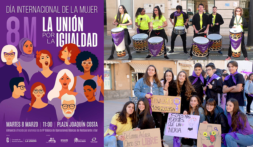 El Ayuntamiento de La Unión informa que la celebraciókn del ‘Día internacional de la mujer’ no será una marcha entre el pabellón de deportes y Huerto Pío, debido a la situación generada por las lluvias, transformándose en una concentración a partir de las 11 horas. Habrá batucada y degustación de productos servida por los alumnos de operaciones básicas de restaurante y bar de la Fundación Sierra Minera.