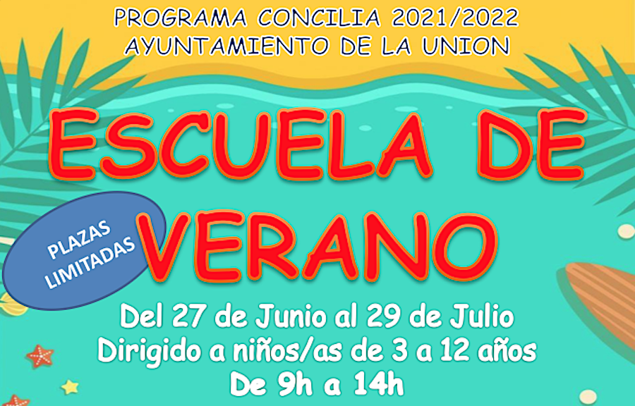El Ayuntamiento de La Unión ha abierto el plazo de matrícula, desde hoy y hasta el 6 de junio, para el Programa de Conciliación para periodo no lectivo de vacaciones de verano 2022, a desarrollar en La Unión (CEIP El Garbanzal) Roche (CEIP Ginés Cabezos Gomariz) y Portmán (CEIP Santiago Apóstol).