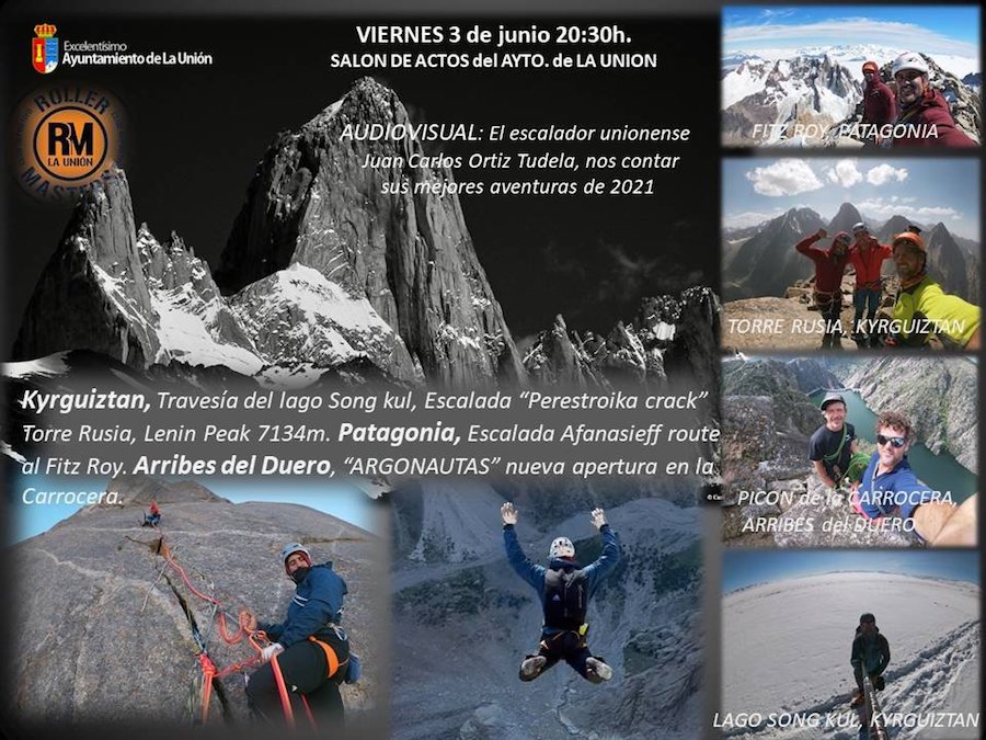 El escalador Juan Carlos Ortiz protagonizará el acto organizado para el 3 de junio en el salón de actos del Ayuntamiento de La Unión, en el que hablará de sus mejores aventuras de 2021 (Patagonia, Kyrguiztán…), con el apoyo de la proyección de un audiovisual.