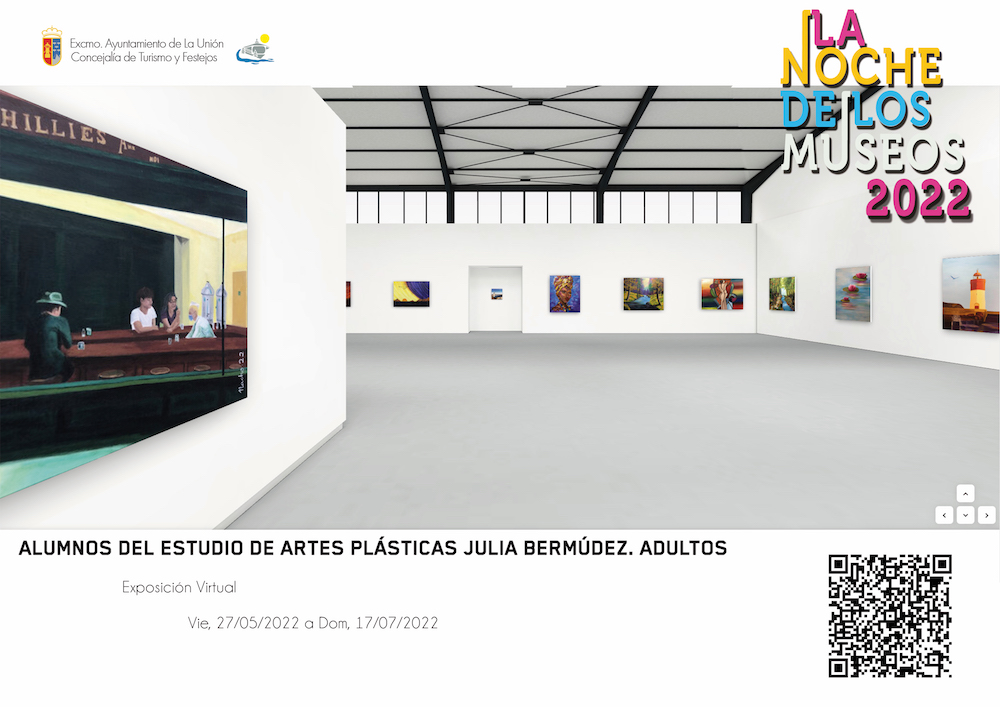 La 'Noche de los museos' ofreció, dentro de su capítulo de exposiciones, una muestra de los dos grupos (adulto e infantil) del estudio de artes plásticas de la artista unionense, que pudieron verse de forma virtual a través de las pantallas de la Oficina de Turismo, los cuales se pueden seguir contemplando a través de internet durante las próximas semanas, visualizándose como si se tratase de un vídeo juego.