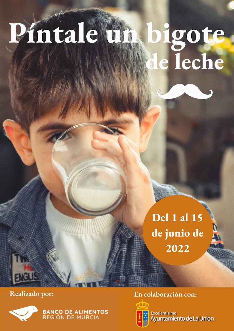 El Ayuntamiento de La Unión se suma a la iniciativa 'Píntale un bigote a la leche' que ha puesto en marcha el Banco de Alimentos de la Región de Murcia de Cartagena, en el que los productos que se recojan se destinará a centros asistenciales y entidades del tercer sector para la infancia de cara a la época estival, en el que cierran muchos comedores escolares.