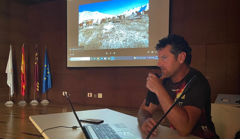 El escalador unionense Juan Carlos Ortiz Tudela ofreció, en el salón de actos de la Casa del Piñón, una charla audiovisual sobre sus mejores gestas alpinistas en 2021 por las cimas de Kyrguiztán, la Patagonia o Arribes del Duero.