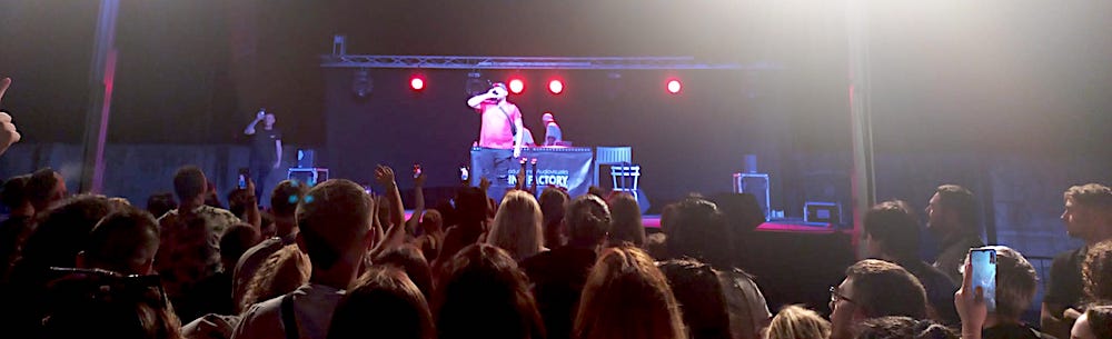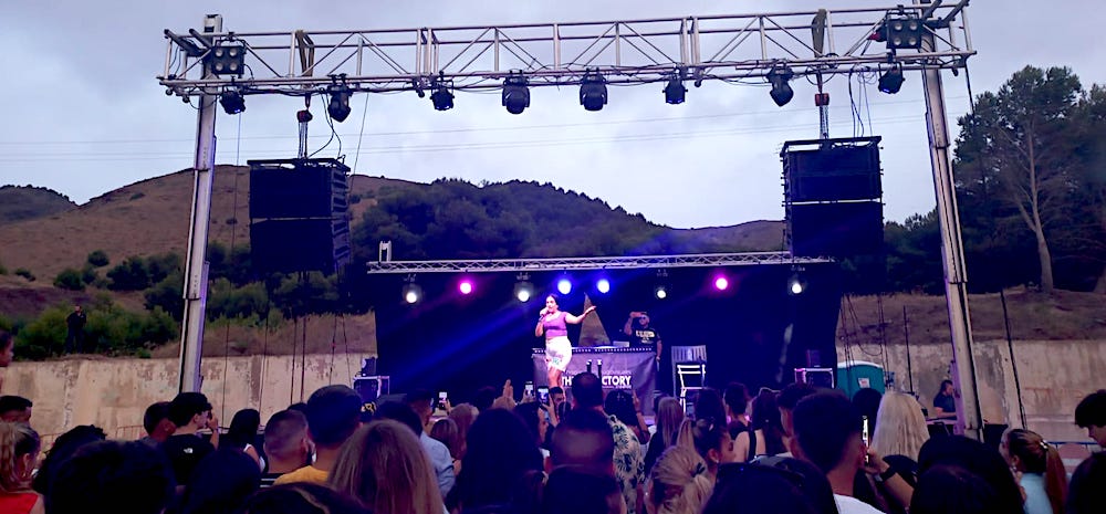 Varios cientos de jóvenes acudieron al recinto municipal de La Maquinista de Levante de La Unión para escuchar las actuaciones de Vins, La negra Flores y Miguel Cabrera (el que más conectó con los asistentes), además del dj Sito Romero y otros artistas invitados.