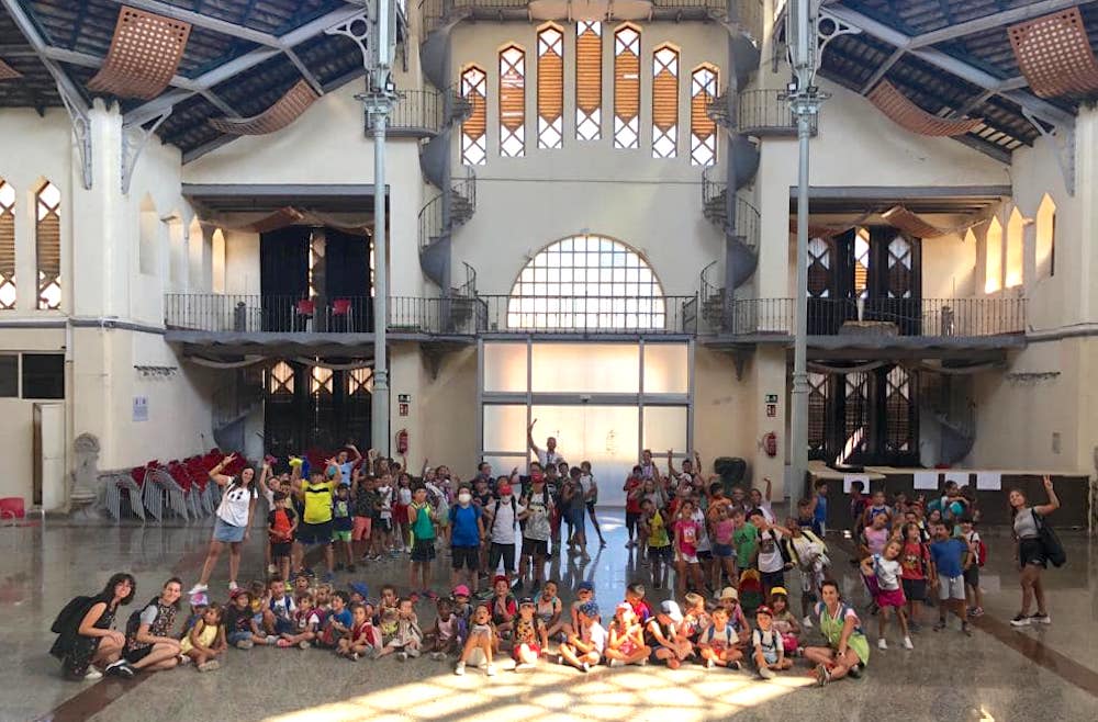 Los alumnos de la escuela de verano municipal de conciliación han realizado hoy una actividad extraordinaria y han conocido el interior del Antiguo Mercado Público de La Unión, donde han aprendido la riqueza arquitectónica del modernismo en el edificio construido en 1907.