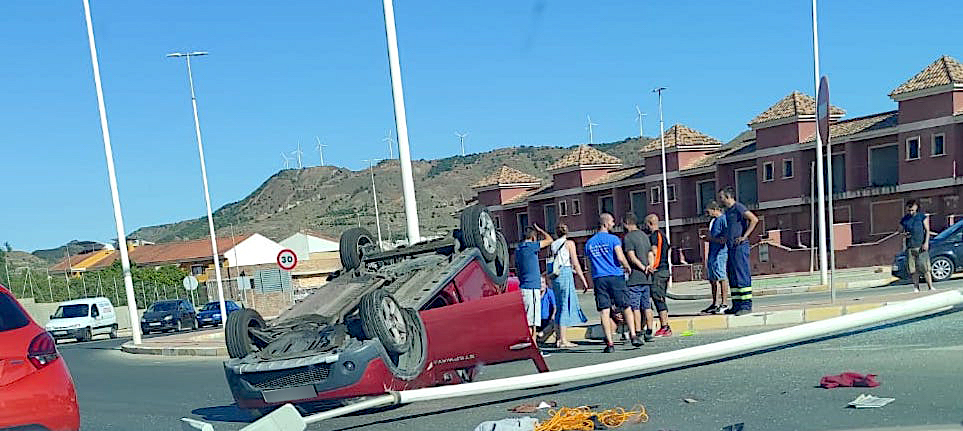 El Centro de Coordinación de Emergencias 112 Región de Murcia recibía llamadas informando del accidente con un solo vehículo implicado, que había quedado volcado con dos ocupantes en el interior en un accidente que ha tenido lugar entre la redonda de Lo Bolarín, las abandonadas 'casas rojas' y el centro de negocios. Al lugar se han desplazado patrullas de la Policía Local de La Unión, bomberos del Servicio de Extinción de Incendios y Protección Civil del Ayuntamiento de Cartagena y dos ambulancias de la gerencia de Urgencias y Emergencias 061, cuyo personal ha atendido en el lugar a los heridos, para después ser trasladados al hospital de Santa Lucía.