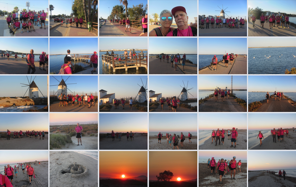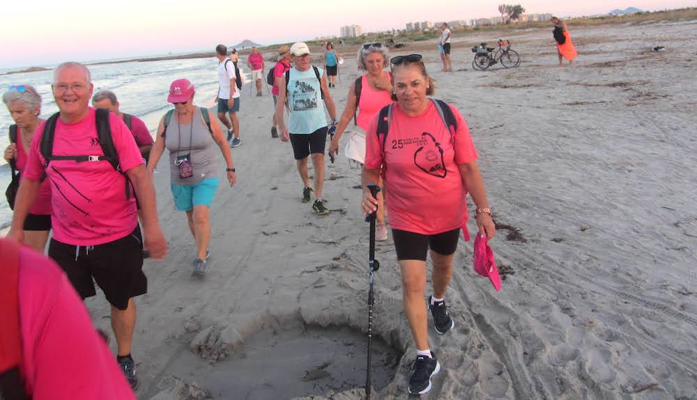 ... en una veraniega ruta por la playa de La Llana, en San Pedro del Pinatar, con paso junto a los baños de barro, en un recorrido en el que avanza el colectivo senderista unionense mientras, de forma paralela, se va metiendo en la noche. GALERÍA DE FOTOS (pinchar aquí)