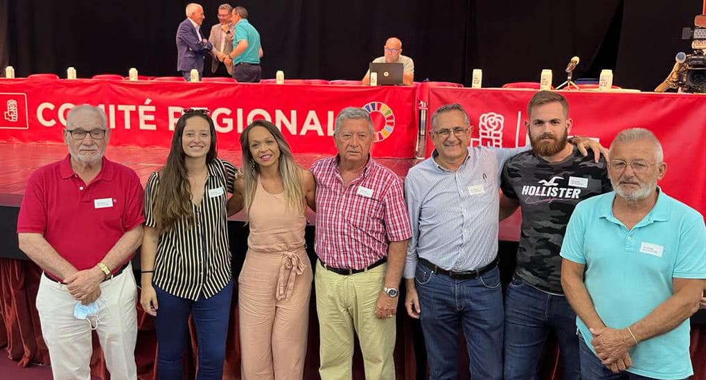 El alcalde junto al secretario general local y miembros de la ejecutiva en el comité regional del PSRM-PSOE celebrado en julio