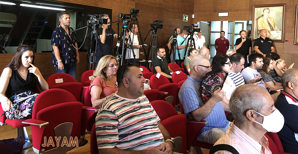 La sesión de la corporación municipal que hoy ha acogido el salón de actos de la Casa del Piñón ha sido la que más cámaras de televisión y fotografía de medios de comunicación ha tenido en muchos años. Es más, tenía más que muchos actos del propio Cante de las Minas, en cuya última celebración saltó el detonante que ha generado este gran interés.