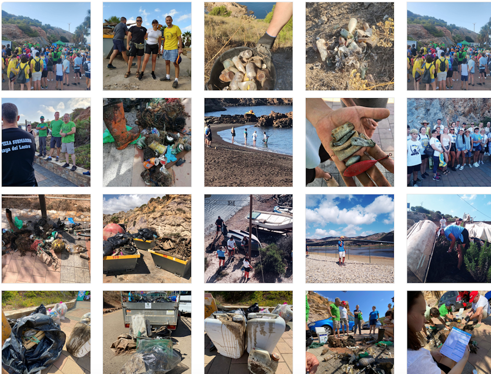 Doscientos cuarenta voluntarios de diferentes asociaciones y colectivos han participado en la recogida de más de 24 metros cúbicos de basuras y restos de embarcaciones hallados en las zonas de baño, alrededores e interior de las aguas de las playas del Lastre y San Bruno (Portmán), durante la jornada de macrolimpieza organizada por el Ayuntamiento de La Unión y las  asociaciones Hippocampus y Arba Cartagena-La Unión.