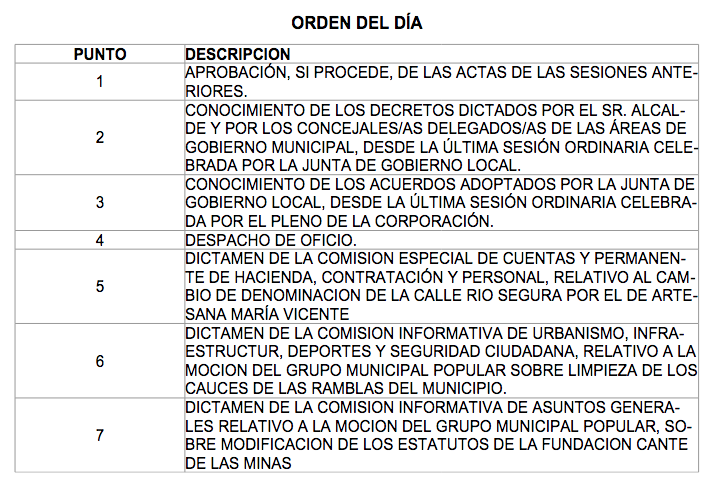 Es uno de los puntos que figura en el orden del día de la sesión ordinaria del pleno del Ayuntamiento de La Unión que se celebra hoy, a partir de las 17 horas en primera convocatoria, en el salón de actos de la Casa del Piñón, con acceso libre para los vecinos que quieran asistir.