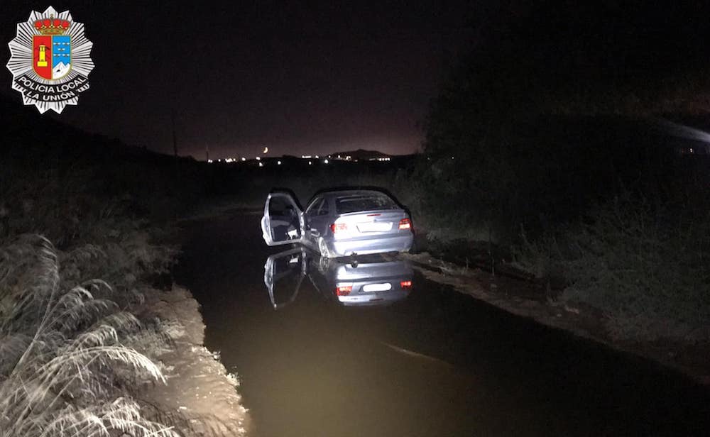 El vehículo, cuya desaparición denunció su propietario, ha sido localizado por la Policía Local de La Unión tras la llamada de un vecino que observó un turismo que estaba atrapado en una zona fanganosa, que había generado la lluvia caída el domingo.