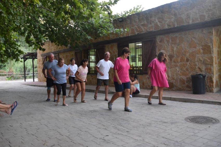 Al día siguiente, partiendo del donde habíamos terminado, iniciamos la marcha pasando por la finca Aljunzarejo, por caminos de esparto, pinadas y casas abandonadas llegamos a Cieza a descansar en dos pabellones (uno para damas y en otro los caballeros). Ellas, más dicharacheras y alegres que nosotros, nos despiertan al son de ("Despierta mi amor, despierta"). Tras desayunar, nos dirigimos hacia el embalse de Alfonso XIII, empezado por la orilla del río Segura, tomando alguna foto en el puente colgante y en el olivo centenario.