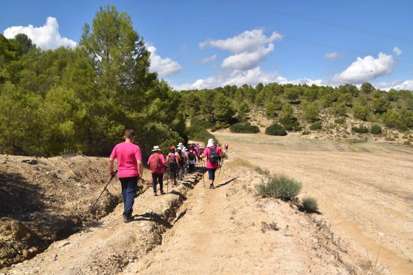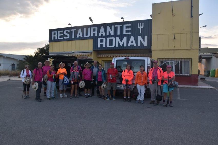 Partiendo en el límite de la Comunidad Valenciana, entre los términos municipales de Pinoso y Jumilla, pasando por Torre del Rico, atravesando viñedos y almendros, llegamos a Venta Roman, junto a la autovía de Jumilla, donde nos recogen las furgonetas de apoyo para llevarnos al alberge de Cieza, junto al Molino de Teodoro, donde pasaremos tres noches.