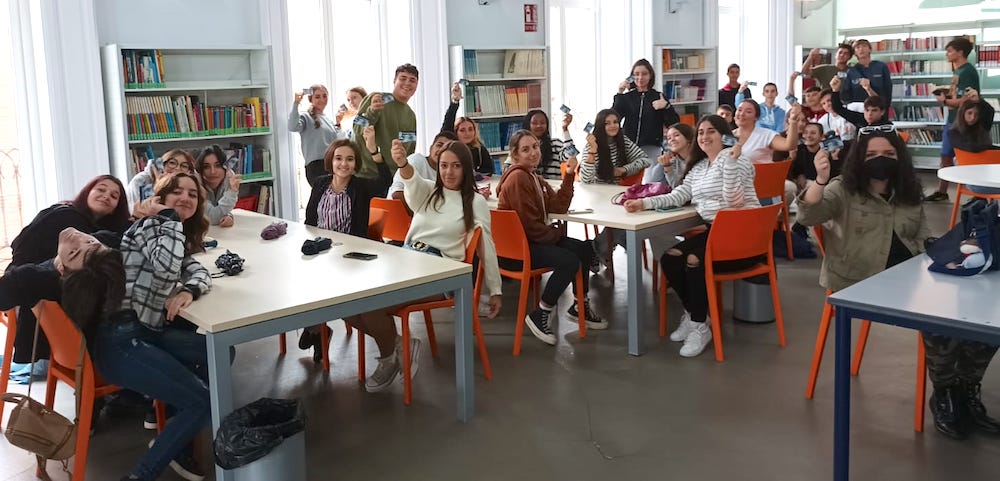 Finalmente, se adentraron en la Biblioteca Municipal, donde se fomenta la lectura. Los estudiantes se llevaron el carné de la biblioteca y un libro.