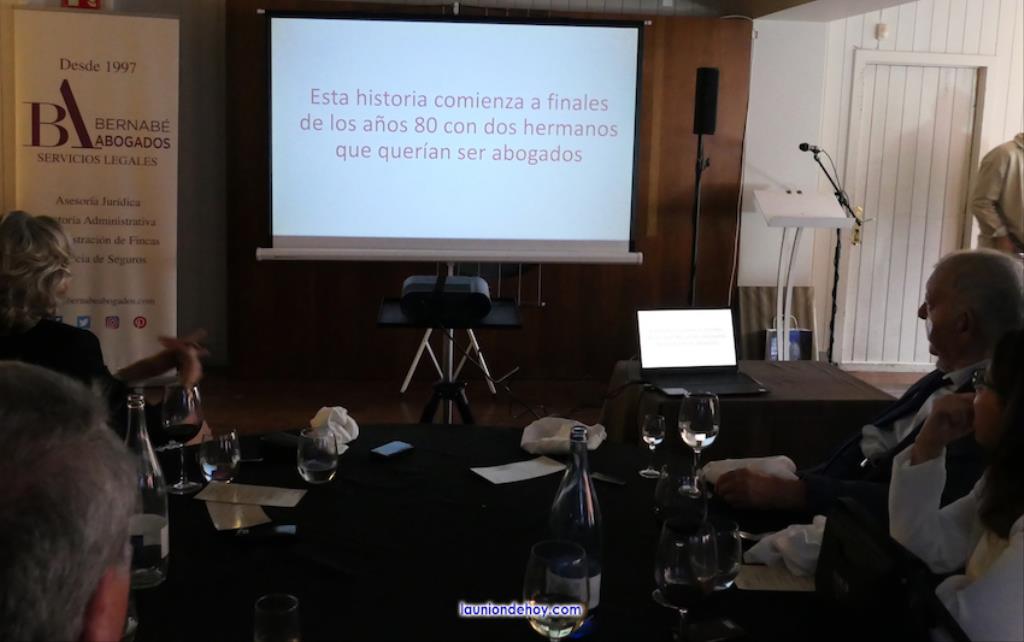 El máximo dirigente de Bernabé Abogados resaltó el papel del abogado en la sociedad actual: “en el Derecho Romano, el Advocatus era 'el que está llamado para auxiliar'; esa es, pues, nuestra auténtica función, la de ayudar a nuestros clientes, más allá de celebrar juicios", aseveró. Tras sus palabras, pidieron el uso del micrófono varios asistentes, como Tomás Martínez Pagán, quien destacó a los padres de los hermanos Bernabé (“fueron los que empezaron a sembrar esta gran semilla”) y obsequió a los homenajeados y a los presentes con una caricatura elaborada por el dibujante Kiko Bueno. Después, otros asistentes como Eulogio González, José Carlos Pérez y Sofía Casanova también tuvieron detalles para los dos ‘letrados de plata’ de La Unión, culminado la jornada con una sucesión de agradables tertulias.