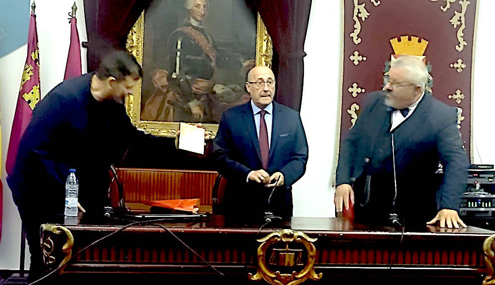 Representantes del partido 'Defiende La Unión' acudieron a la conferencia de Paco Paredes en la Real Sociedad Económica de Amigos del País de Cartagena de ayer tarde