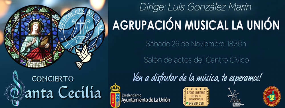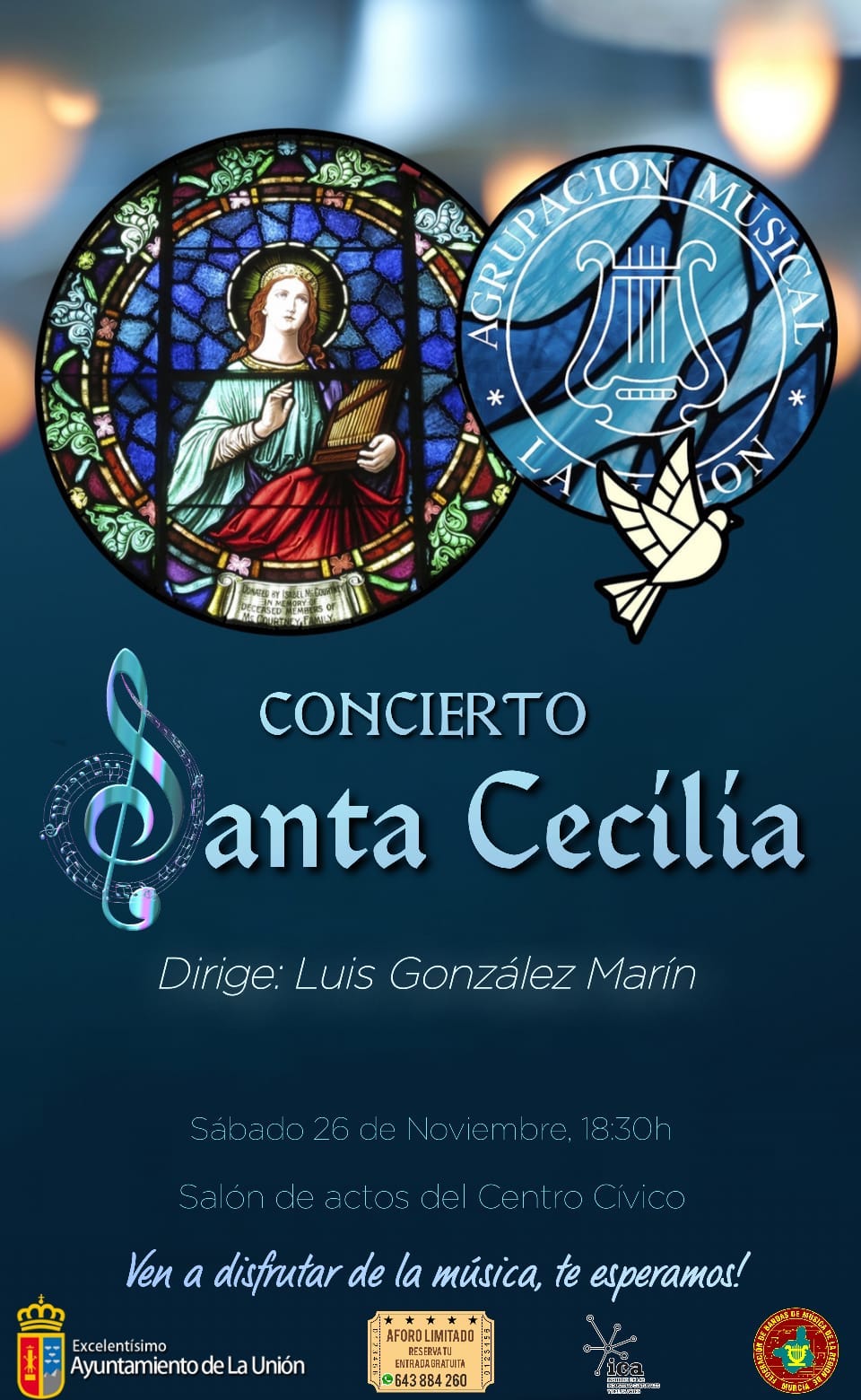 La actuación especial que cada año tributa la Agrupación Musical La Unión a la patrona de la música tendrá lugar el 26 de noviembre a las 18.30 horas en el centro cultural Asensio Sáez al estar en obras el Mercado Antiguo. Debido al aforo más reducido, la AMLU informa que deben reservarse entradas con antelación.