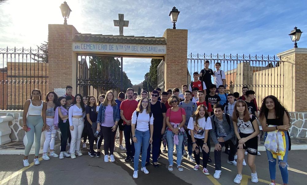 Los alumnos de cuarto curso de ESO de los institutos Sierra Minera y María Cegarra han participado esta mañana en una ruta misteriosa por el cementerio de La Unión con el arqueólogo y escritor Santi García.