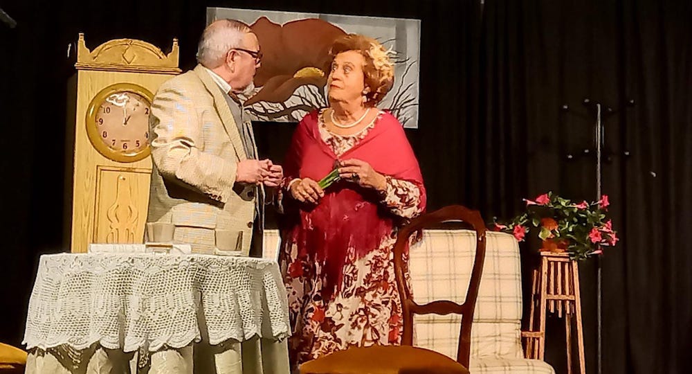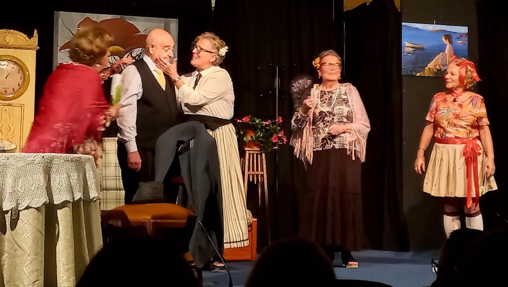 La obra, dirigida por Juan Martinez Luján, con la ayuda de Carmen Ortega, levantaba al público de sus butacas entre sonoros aplausos por el gran esfuerzo que los nueve actores y actrices realizaban durante los dos últimos meses para disfrutar esta noche del estreno teatral, tal y como aseguraba Conchi Pagán, presidenta del Centro de Personas Mayores.