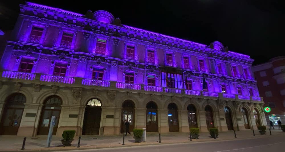 El edificio del Ayuntamiento de La Unión se ilumina desde anoche de morado con motivo del día internacional por la eliminación de la violencia de género hacia la mujer, que se celebra hoy en todo el mundo. En nuestro país, en el presente ejercicio, la víctimas de la violencia machista casi alcanzan las cuatro decenas de mujeres.