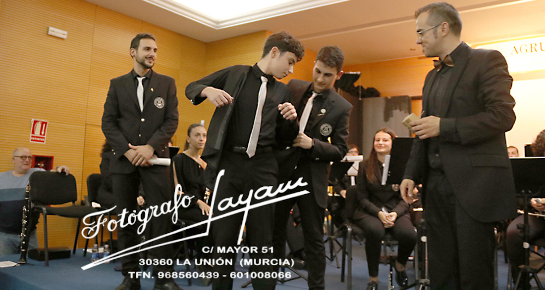 De los 52 músicos, siete se han incorporado de forma oficial hace escasos días procedentes de la escuela de la agrupación. Anoche fueron presentados por los padrinos y recibieron la chaqueta profesional del uniforme y la acreditación de su incorporación a la banda titular. Ellos son Ana Garcia Truque con flauta, Adrian Milán Cánovas con clarinete, José Gabriel Rodríguez Garnés con Tuba, Francisco Miguel Márquez Conesa con clarinete, Salvador Egea Navarro con clarinete, Gervasio Vera Ros con trombón y Carmen Alarcón Navarro con flauta.