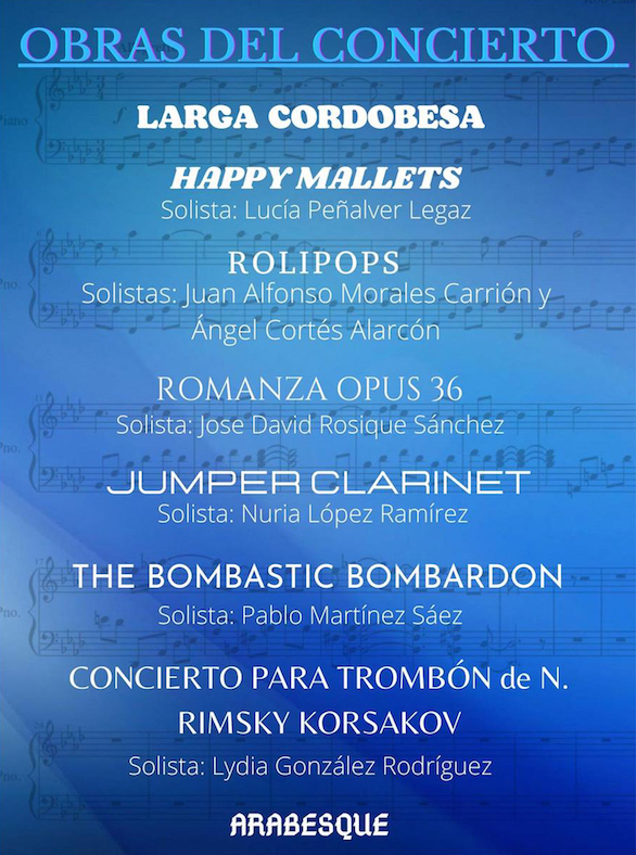 Entre los momentos destacados figuran el enfrentamiento de las dos trompetas de Juan Alfonso Morales Carrión y Ángel Cortés Alarcón en la obra ‘Rolipops’ y la apoteósica actuación de Lydia González Rodríguez en ‘Concierto para trombón de Korsakov’, que puso en pie a todos los asistentes con una ovación interminable.